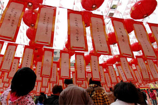 灯谜是中国的富有民族风格的一种文娱形式,是从古代就开始流传的元宵节特色活动。谜语能启迪智慧又迎合节日气氛,响应的人众多,是元宵节不可缺少的节目。